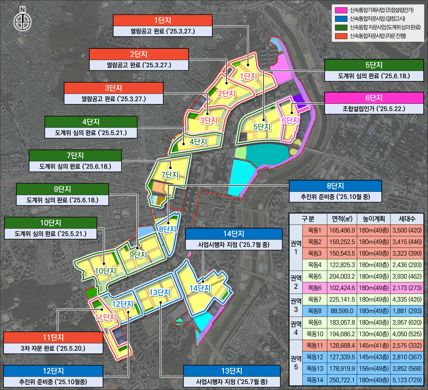 ÇöÀç ¸ñµ¿ 6¡¤8¡¤12¡¤13¡¤14´ÜÁö Á¤ºñ°èȹÀÌ °í½Ã ¿Ï·áµÆ´Ù. ¸ñµ¿ 4¡¤5¡¤7¡¤9¡¤10´ÜÁö´Â ½Ã µµ½Ã°èȹÀ§¿øÈ¸ ½ÉÀǰ¡ ¿Ï·áµÈ »óÅ´Ù. ¸ñµ¿ 1¡¤2¡¤3¡¤11´ÜÁö´Â ½Å¼ÓÅëÇÕ±âȹ ÀÚ¹® ¿Ï·á ÈÄ µµ°èÀ§ ½ÉÀÇ ÁøÇà ¿¹Á¤ÀÌ´Ù.