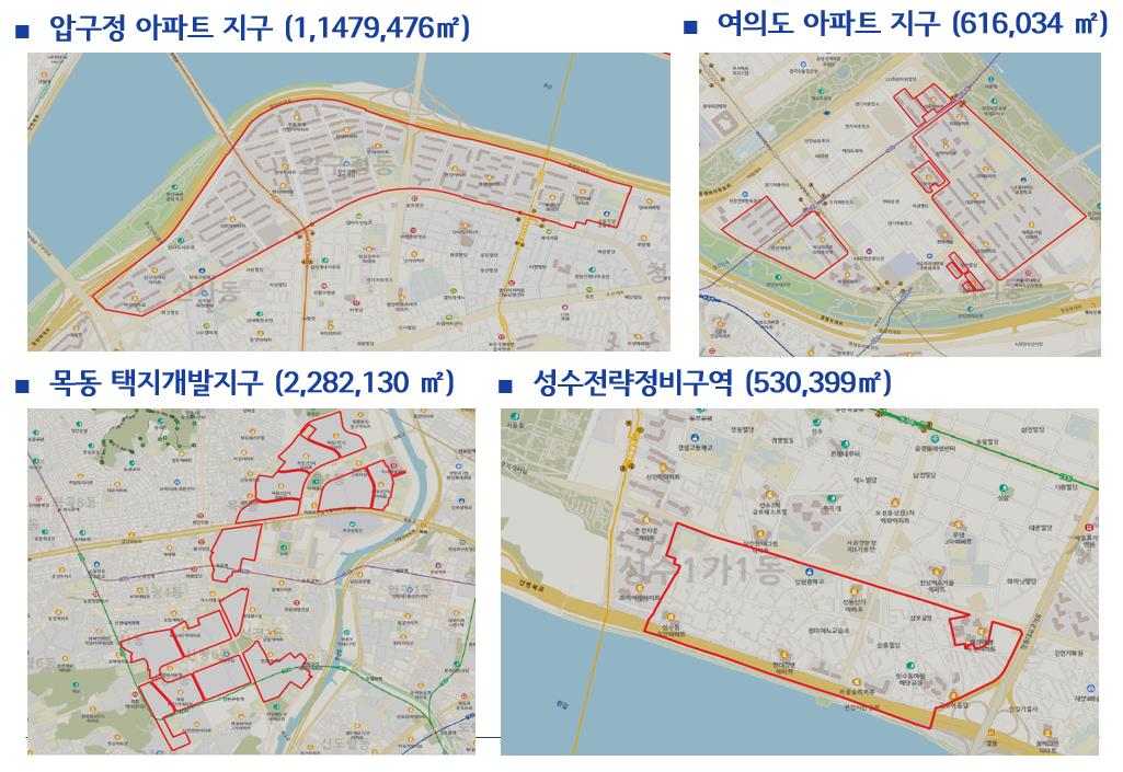 ´ë»óÁö´Â °­³²±¸ ¾Ð±¸Á¤ ¾ÆÆÄÆ®Áö±¸¿Í ¿µµîÆ÷±¸ ¿©Àǵµ ¾ÆÆÄÆ®Áö±¸, ¾çõ±¸ ¸ñµ¿ ÅÃÁö°³¹ß»ç¾÷ ¾ÆÆÄÆ®´ÜÁö, ¼º¼öµ¿ ¼º¼öÀü·«Á¤ºñ±¸¿ªÀÌ´Ù. ÇØ´ç Áö¿ªÀº 2027³â 4¿ù 26ÀϱîÁö 1³â°£ ÅäÁö°Å·¡Çã°¡±¸¿ªÁöÁ¤ÀÌ ¿¬ÀåµÈ´Ù.
