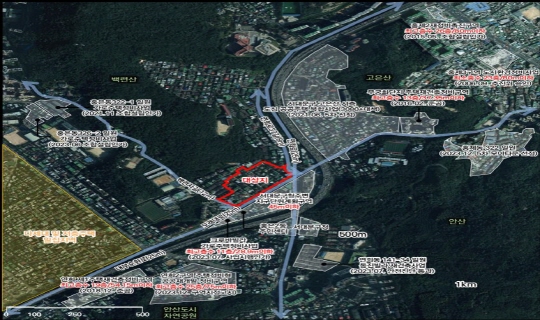 ÀÌ¿¡ ¹é·Ã»ê°ú È«Á¦Ãµ, ¾È»êÀ¸·Î À̾îÁö´Â ³ìÁöÃàÀ» °í·ÁÇØ ±¸¸ªÁöÀÎ ´ë»óÁöÀÇ ¹èÈÄ »êÁö¿Í ÁÖº¯ °ÇÃ๰ÀÌ Á¶È­¸¦ ÀÌ·çµµ·Ï ÀÚ¿¬½º·¯¿î ½ºÄ«À̶óÀÎÀ¸·Î °Ç¸³µÈ´Ù.