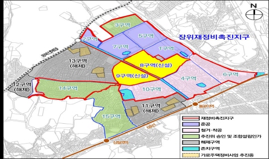 ÀåÀ§8¡¤9±¸¿ªÀº ¾Õ¼ ÀåÀ§´ºÅ¸¿îÀ» ÃßÁøÇÏ´Ù°¡ 2017³â Á¤ºñ±¸¿ª¿¡¼ ÇØÁ¦µÈ ÀÌÈÄ 2020³â °ø°øÀç°³¹ß »ç¾÷Èĺ¸Áö·Î ¼±Á¤µÆ´Ù. À̹ø ÀçÁ¤ºñÃËÁø°èȹ¾È¿¡¼´Â ´ë»óÁöÀÇ º¯ÈµÈ ¿©°ÇÀ» ¹Ý¿µÇØ µµ·Î µî ±â¹Ý½Ã¼³ °èȹÀ» ÀçÁ¶Á¤ÇÏ¸é¼ Áö¿ª¿¡ ÇÊ¿äÇÑ »çȸº¹Áö¡¤¹®È½Ã¼³ µîÀ» È®º¸Çß´Ù.