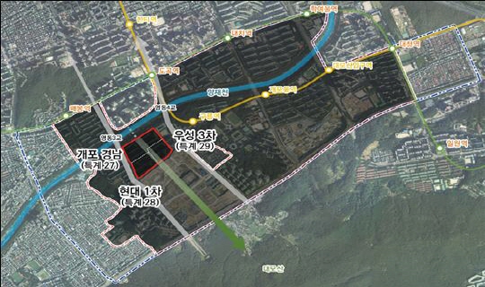 1984³â ÁذøµÈ °³Æ÷ °æ³²¡¤¿ì¼º3Â÷¡¤Çö´ë1Â÷¾ÆÆÄÆ®´Â 1980³â´ë º»°ÝÀûÀ¸·Î °³¹ßµÈ °³Æ÷ÅÃÁö°³¹ßÁö±¸¿¡ ¼ÓÇØ ÀÖ´Ù. ±×°£ 3°³ ´ÜÁö´Â È¿À²ÀûÀÎ ±â¹Ý½Ã¼³ Á¤ºñ¿Í °ÇÃà°èȹ ¼ö¸³À» À§ÇØ ÇϳªÀÇ ´ÜÁö·Î ÅëÇÕ Àç°ÇÃàÀ» ÃßÁøÇÏ·Á ÇßÀ¸³ª °¢ ´ÜÁö ÁÖ¹Îµé °£ Ãþ¼ö, ±â¹Ý½Ã¼³ °èȹ, ¼¼´ë ¹èºÐ µî ÀÌÇØ°ü°è Á¶Á¤¿¡ ¾î·Á¿òÀ» °Þ¾ú´Ù.